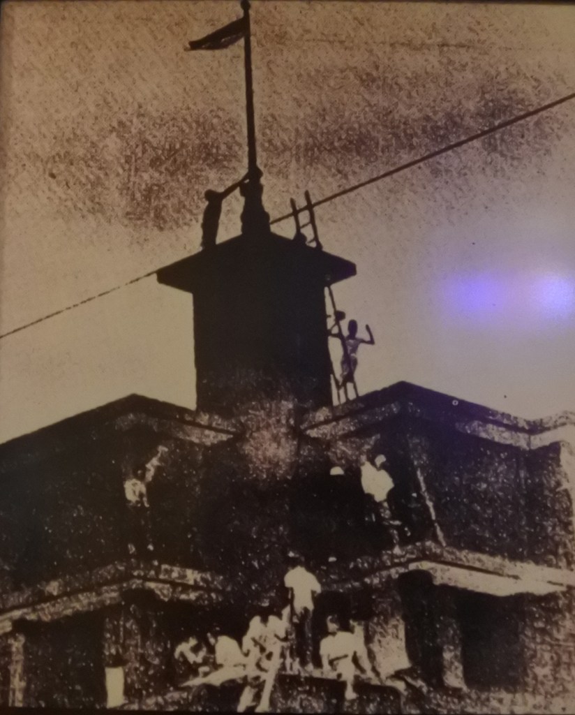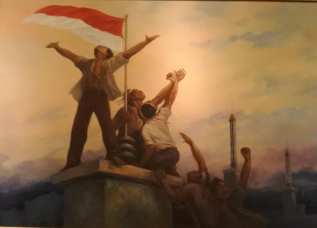 For the past 40 years, I have been conducting research in the kampung (urban village) (see below) of Surabaya, Indonesia. The Battle of the Java Sea occurred on February 26, 1945. It marked the opening of the occupation of Java during the Pacific War. The 48th Division captured Surabaya on March 8, the day before capturing the entire island of Java. Following this, Japanese military rule began. Surabaya became home to the 14th Independent Garrison. This garrison consisted of four independent garrison battalions of the 16th Army responsible for East Java. Memories of World War II are embedded throughout the city. In Surabaya, there is a jalan (street) called Kembang Jepun, which means “Flower of Japan.” This street was Surabaya’s entertainment district. It was lined with izakayas and restaurants. The district was filled with barbers, peddlers, and street prostitutes. Japanese people began migrating to various parts of Southeast Asia in the early Meiji period. During this time, Southeast Asia was known as the “South” or “South Seas.” The first were women known as “karayukisan,” followed by people working in odd jobs (restaurants, seat rentals, barbers, hairdressers, kimono goods, general merchandise, medicine sales, etc.) in their vicinity. It is known that a Japanese community had formed in Surabaya by the end of the Meiji period. My regular hotel, the Majapahit Hotel, formerly the Yamato Hotel, displays a large oil painting in its lobby. It depicts young Javanese men with their arms outstretched on the roof of the hotel. The red and white Indonesian flag is flying there. (Figure B①②) This incident on September 17, 1945, is widely remembered as the event that sparked the War for Independence.